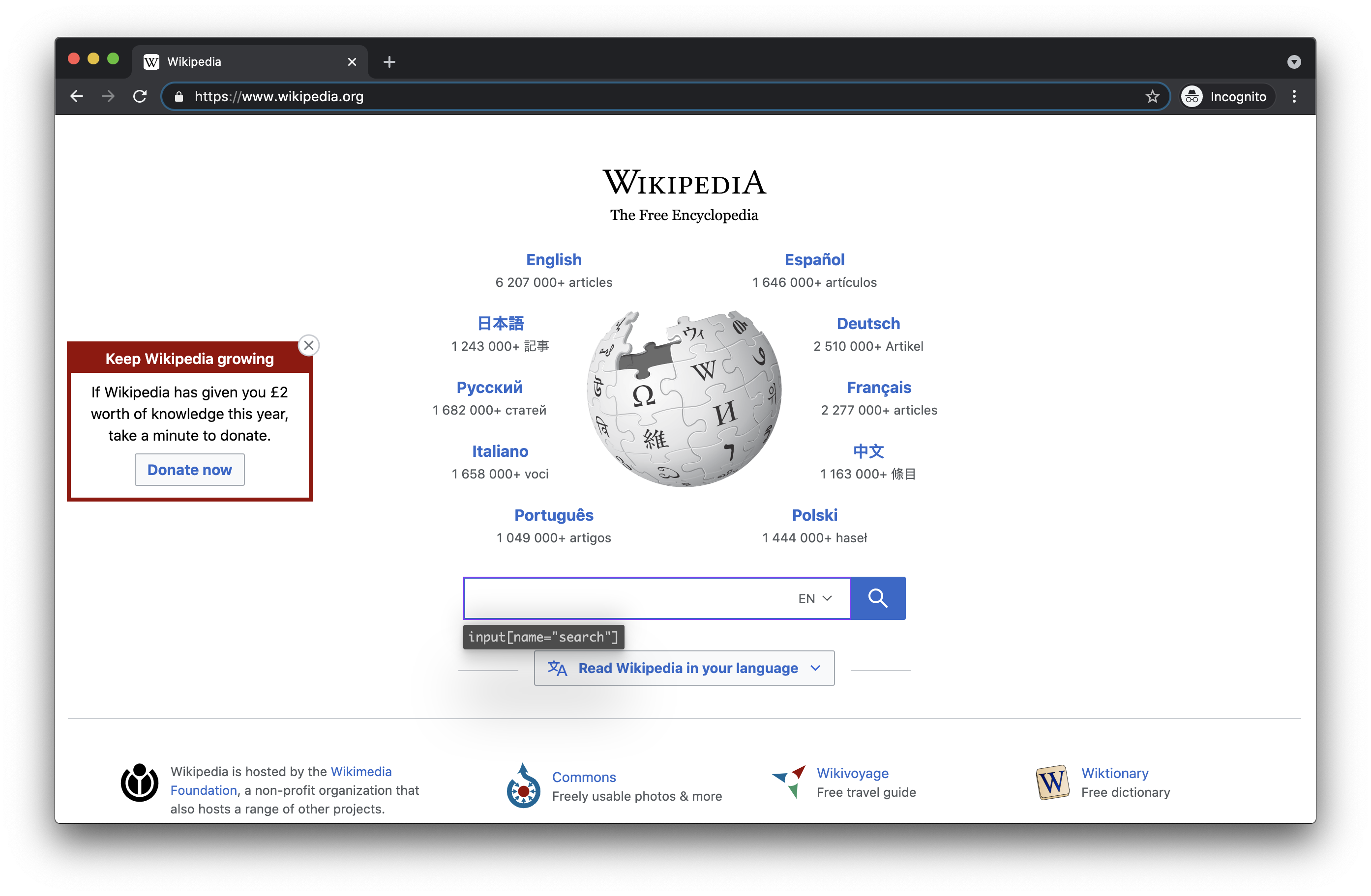 Note: Replace "wikipedia.org" with any website of your choice. i.e. thomaschaplin.me