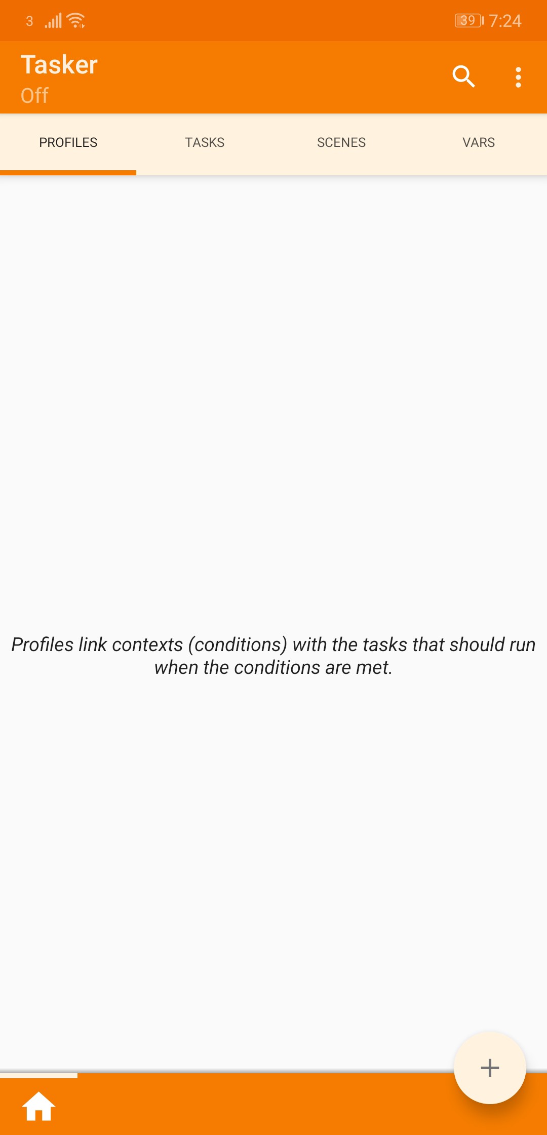 Now that you have installed Tasker, go ahead and open the app. You will be presented with a blank screen as shown below.