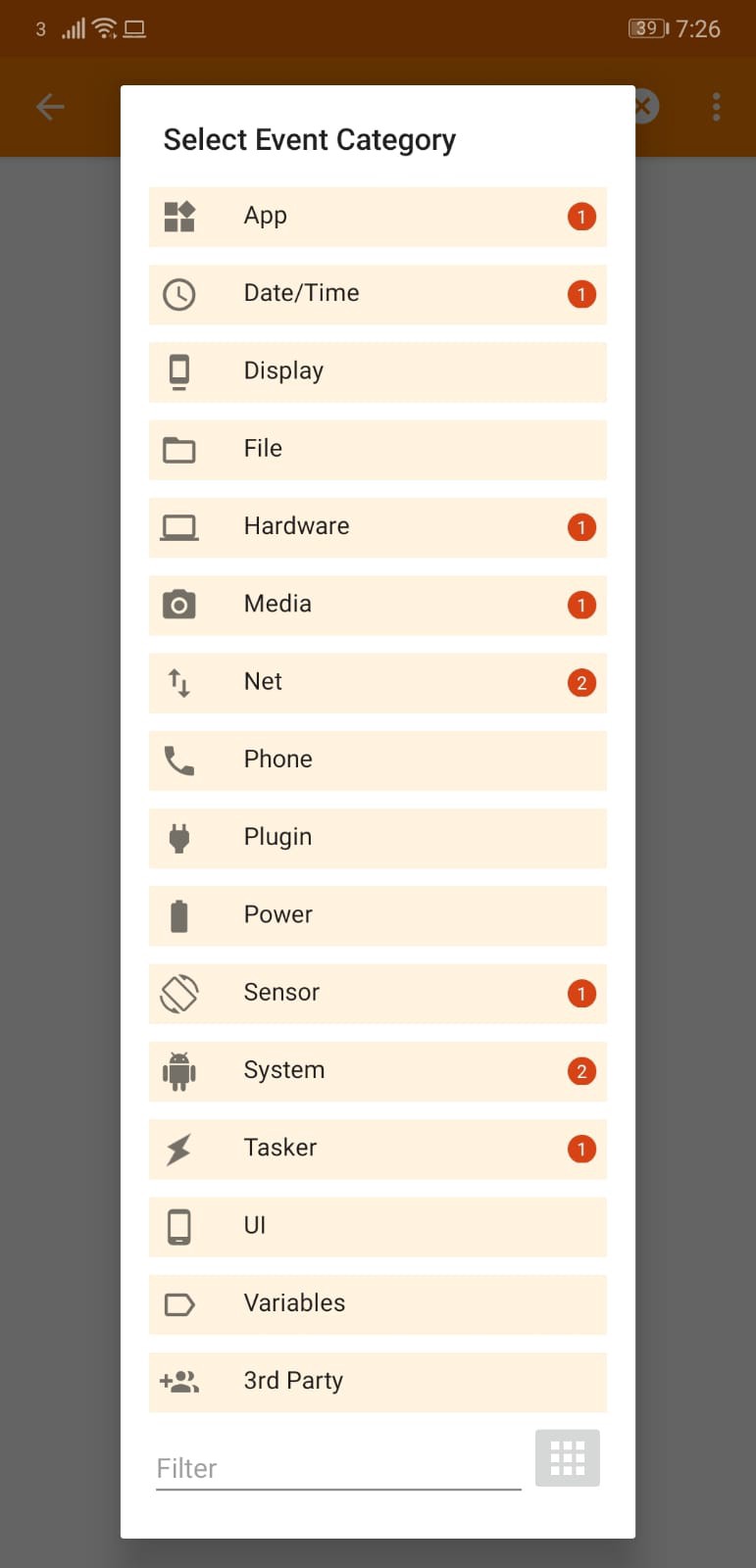 Ensuring you are on the Profile tab, click on the ➕button in the bottom right corner. Upon clicking the ➕button you will see a context menu as shown below. Click on the Event option.